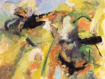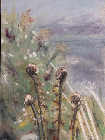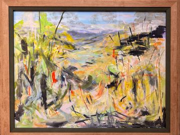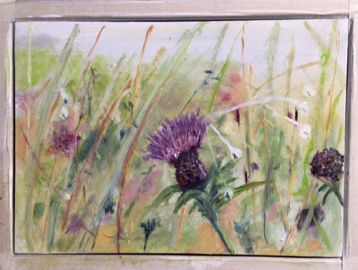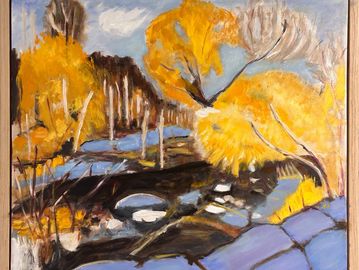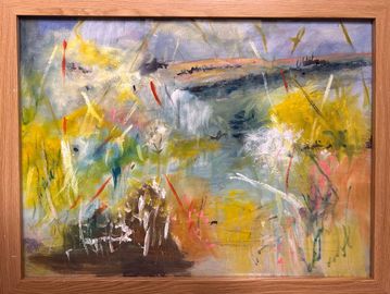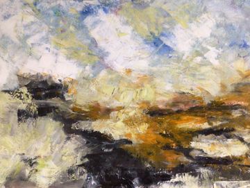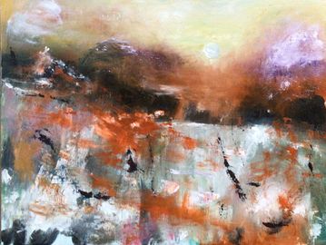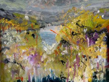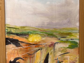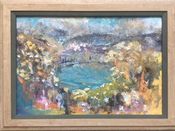 oil used with medium gives a lightness to express the openness of the countryside in Devon with the colours of Autumn.